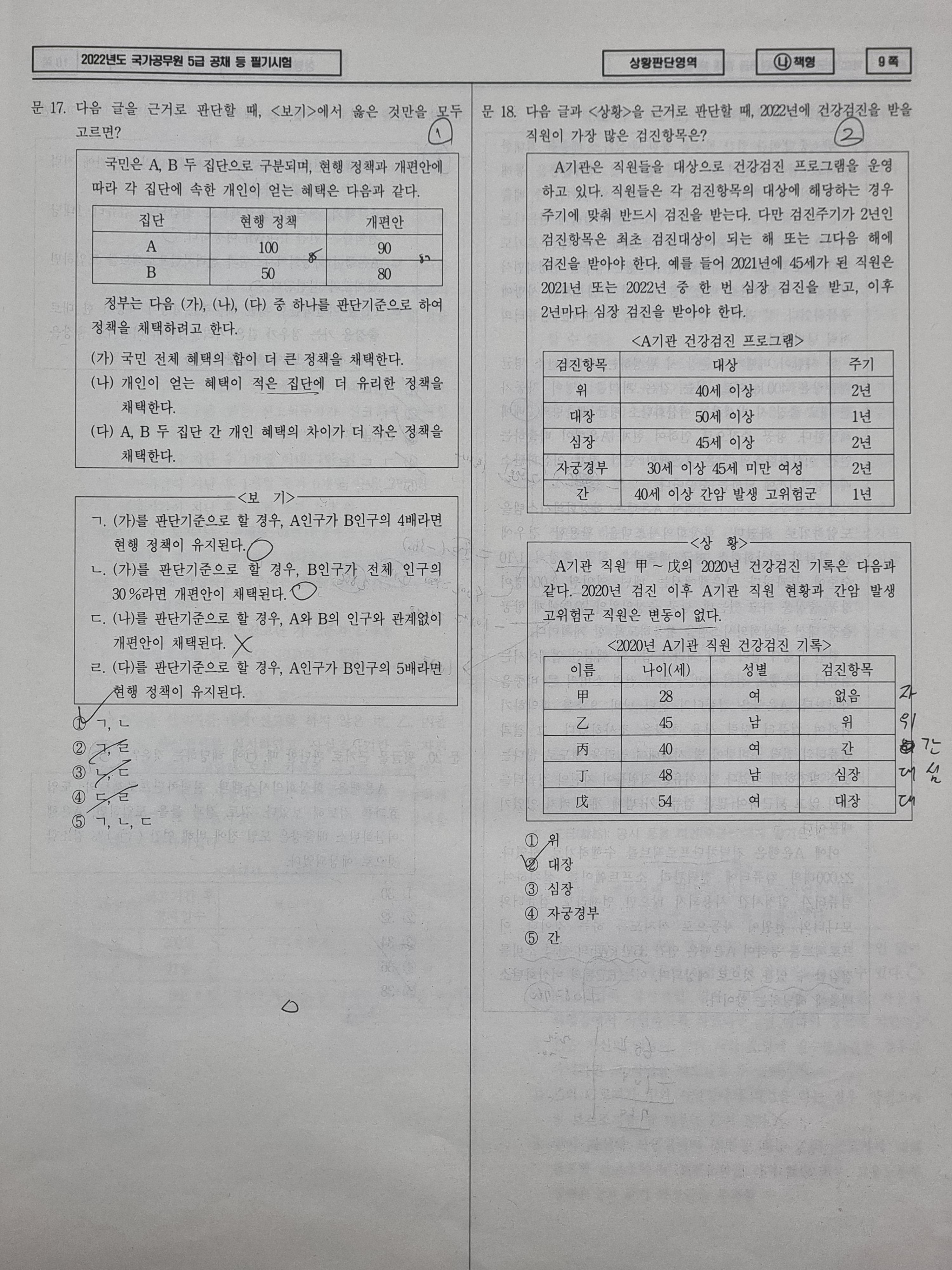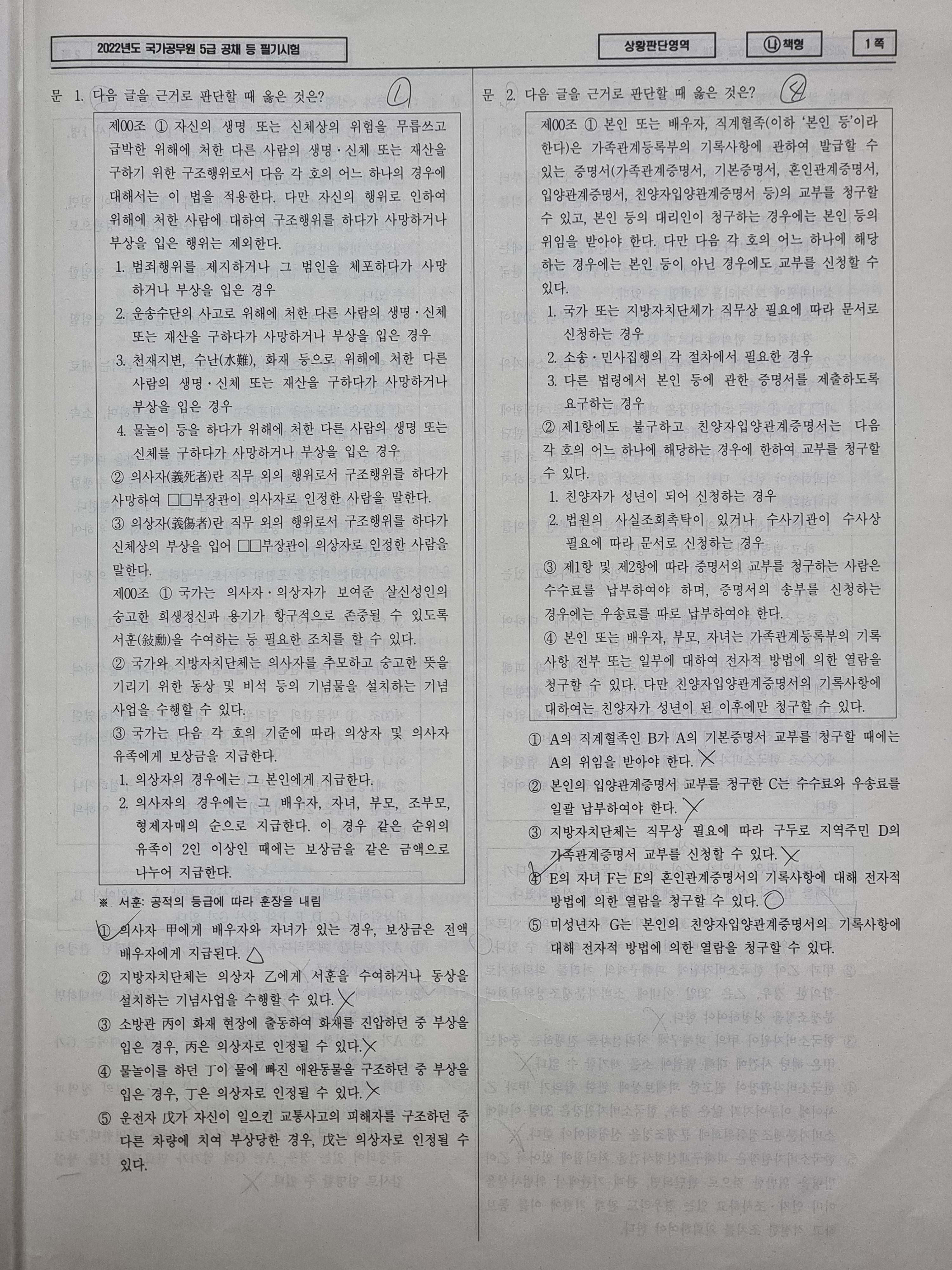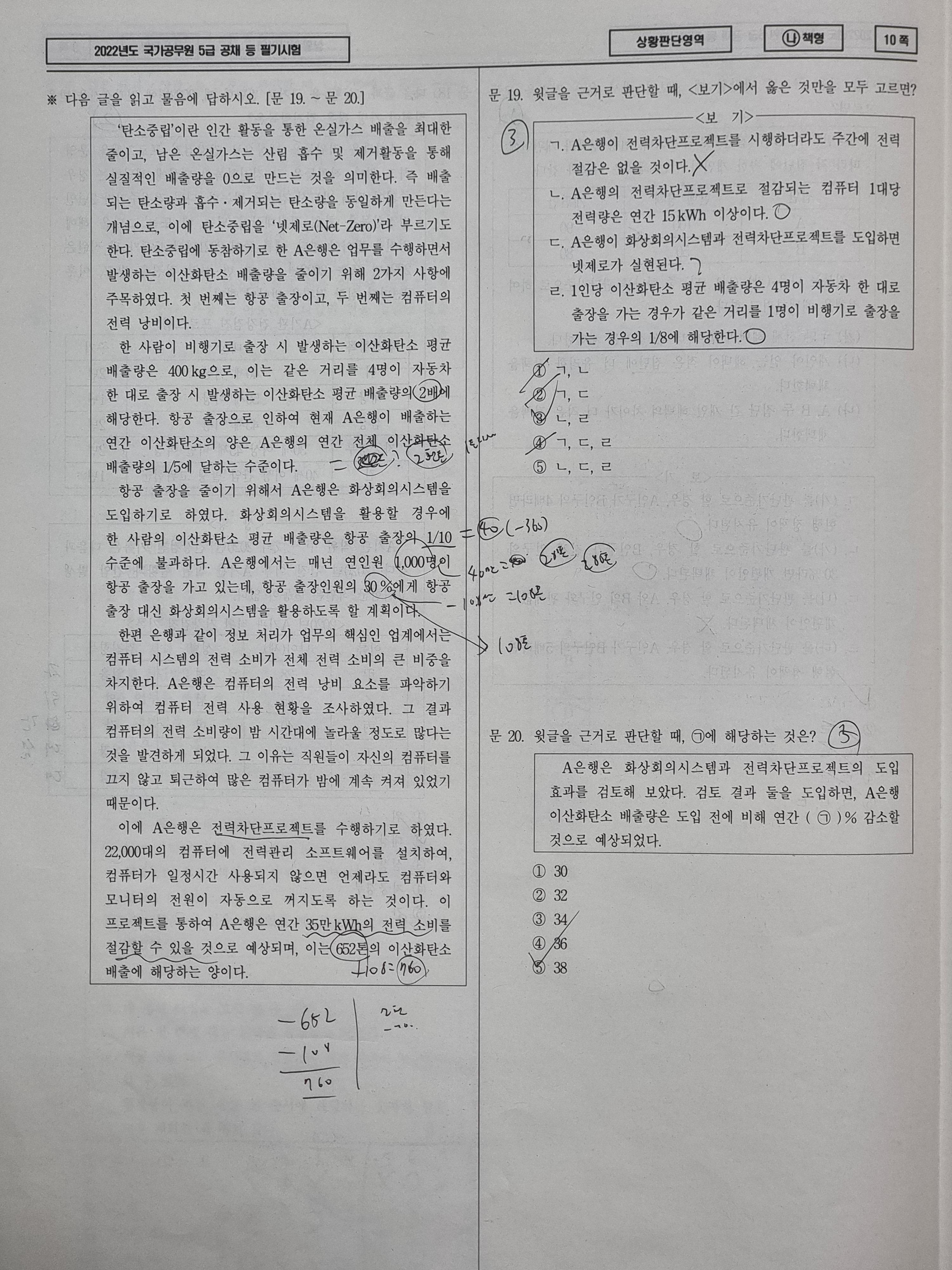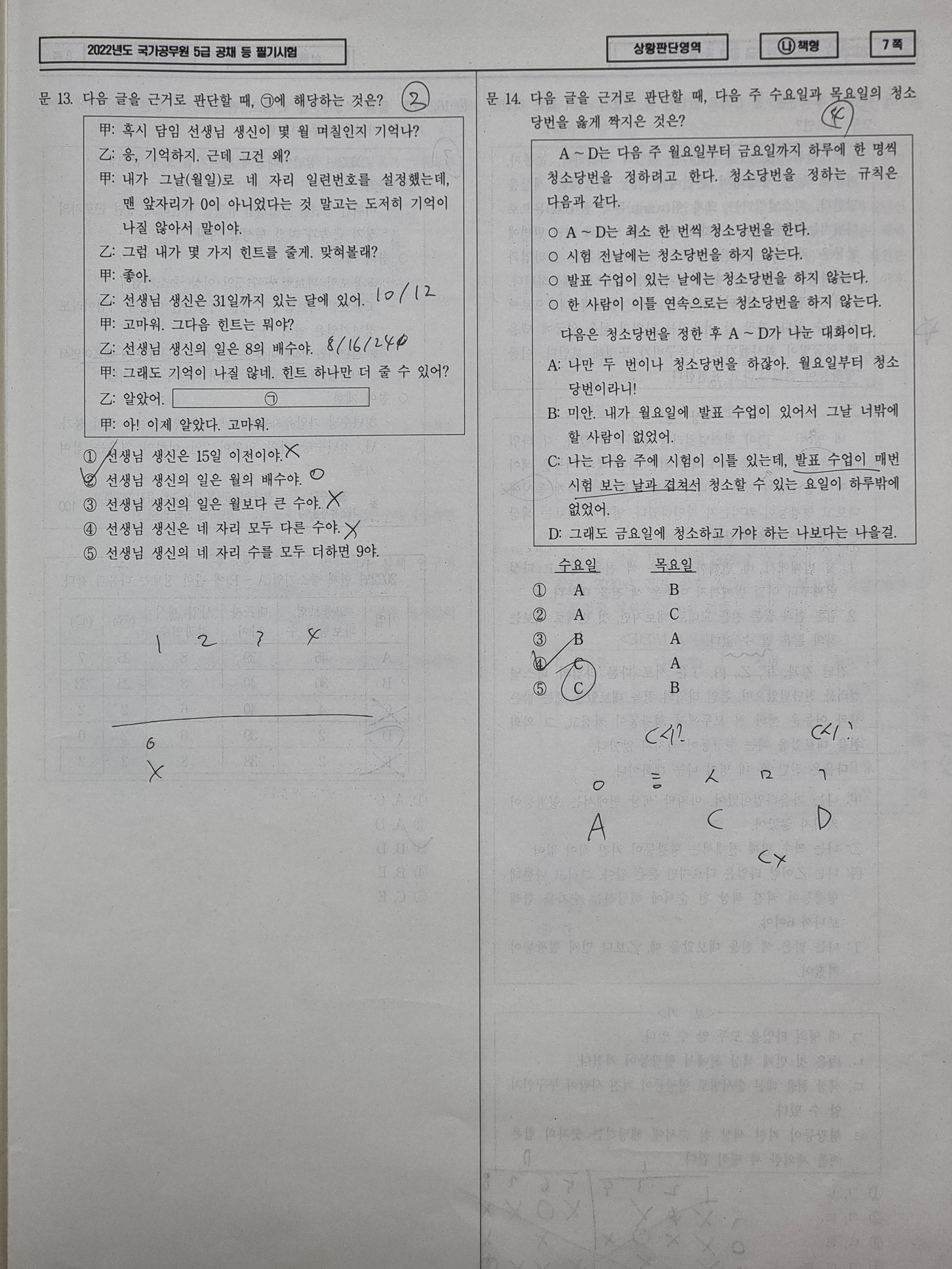 2022년 5급 PSAT 상황판단 풀이문제지 풀이 기록 2022. 2. 27. 2022년 5급 PSAT 상황판단 풀이문제지다. 2022년 5급 PSAT 실전 복기·후기 (가채점 83.3) 소리소문없이(?) 2022년 5급 PSAT 시험장에 다녀왔다. 어차피 붙으려고 보는 건 아니니 시험장이 집과 가장 가까울 것으로 예상되는 외교원후보자선발시험에 원서접수했고, 예상대로 집과 가장 가 psat-bamdori.tistory.com 공유하기 게시글 관리 PSAT 푸는 밤도리 저작자표시 비영리 변경금지 (새창열림) '풀이 기록' 관련 글 더보기 2022년 7급·민경채 PSAT 상황판단 풀이문제지 2022.07.23 더 읽기 2022년 7급·민경채 PSAT 언어논리 풀이문제지 2022.07.23 더 읽기 2022년 5급 PSAT 자료해석 풀이문제지 2022.02.27 더 읽기 2022년 5급 PSAT 언어논리 풀이문제지 2022.02.27 더 읽기 댓글