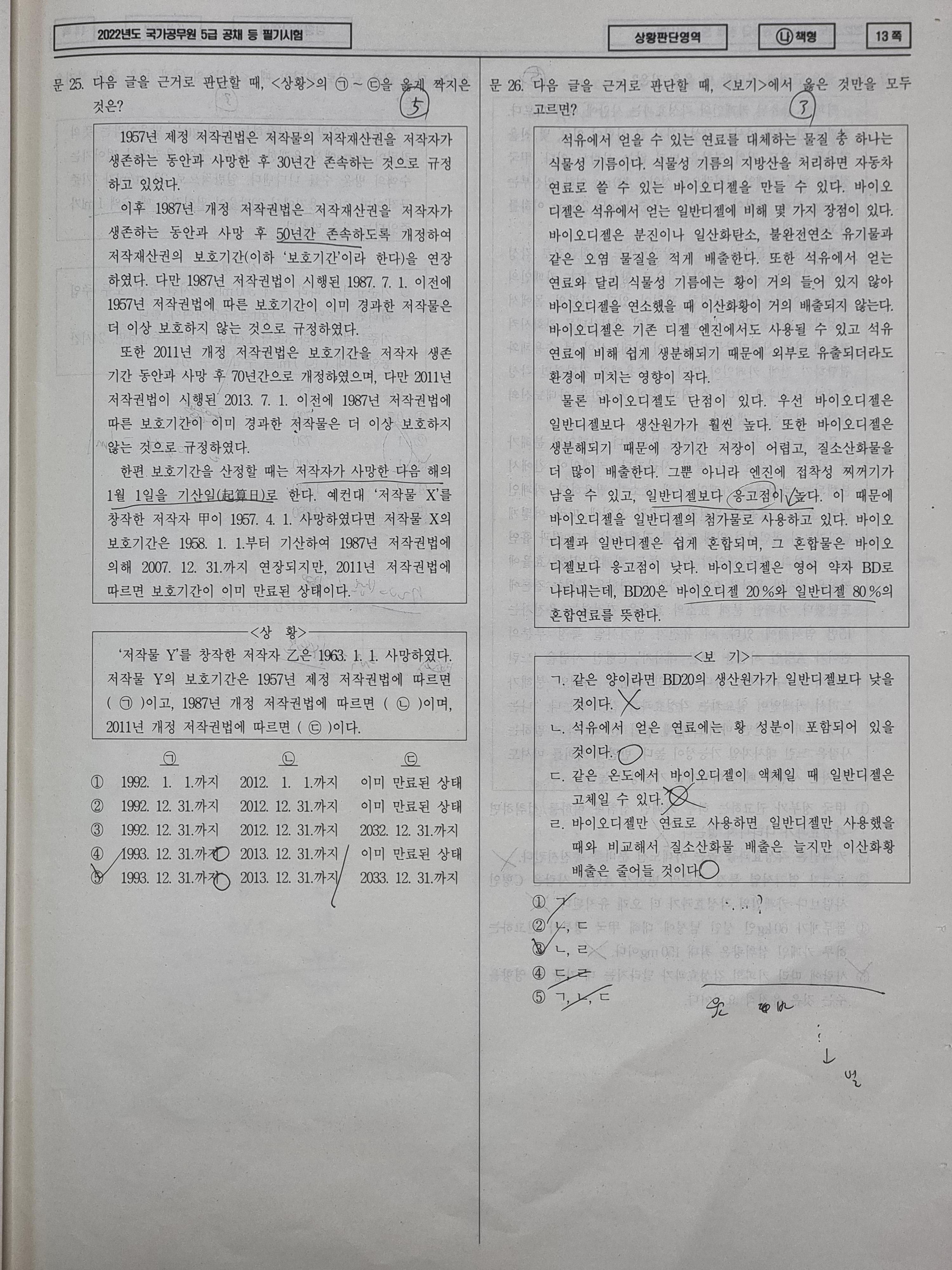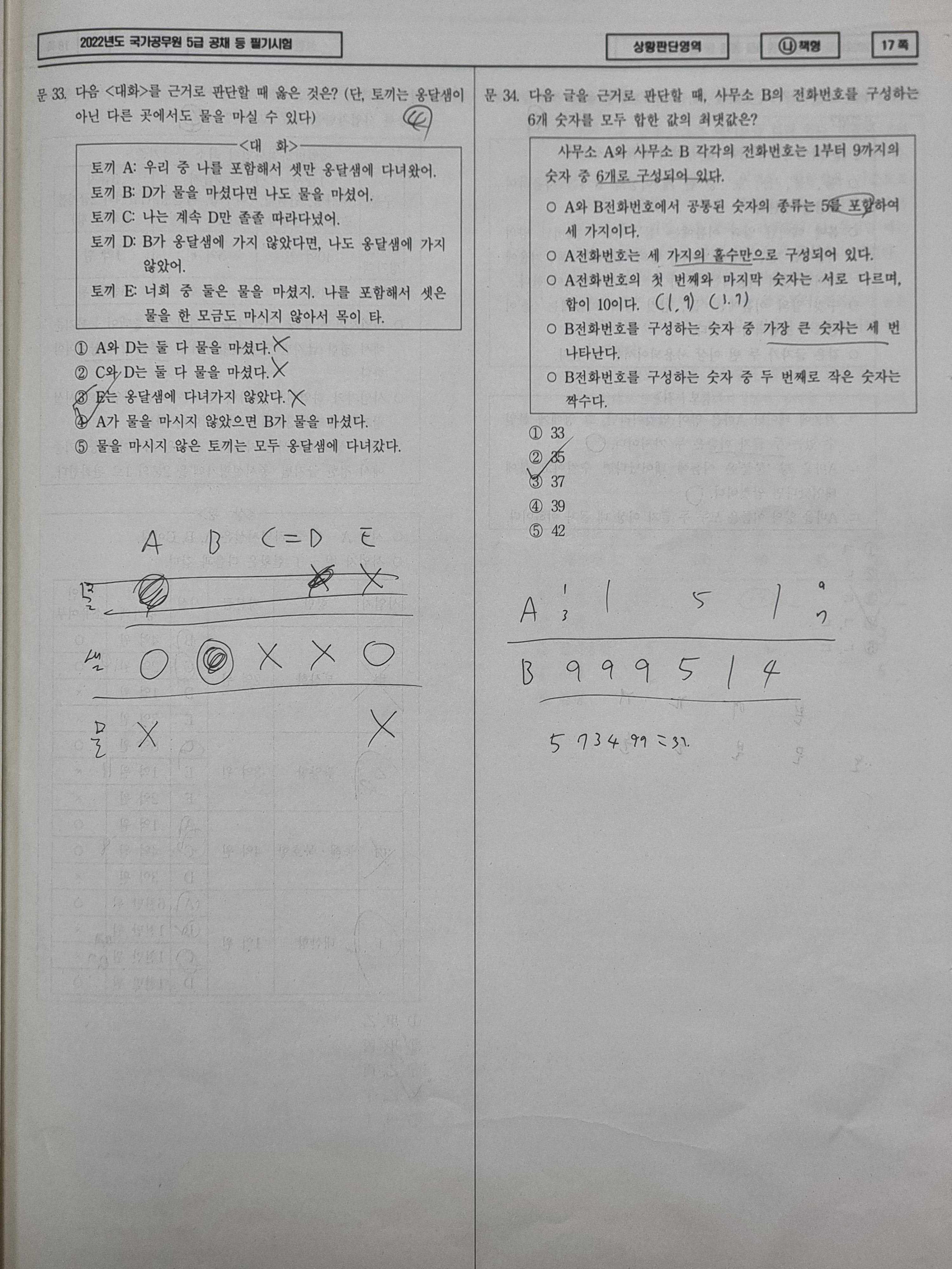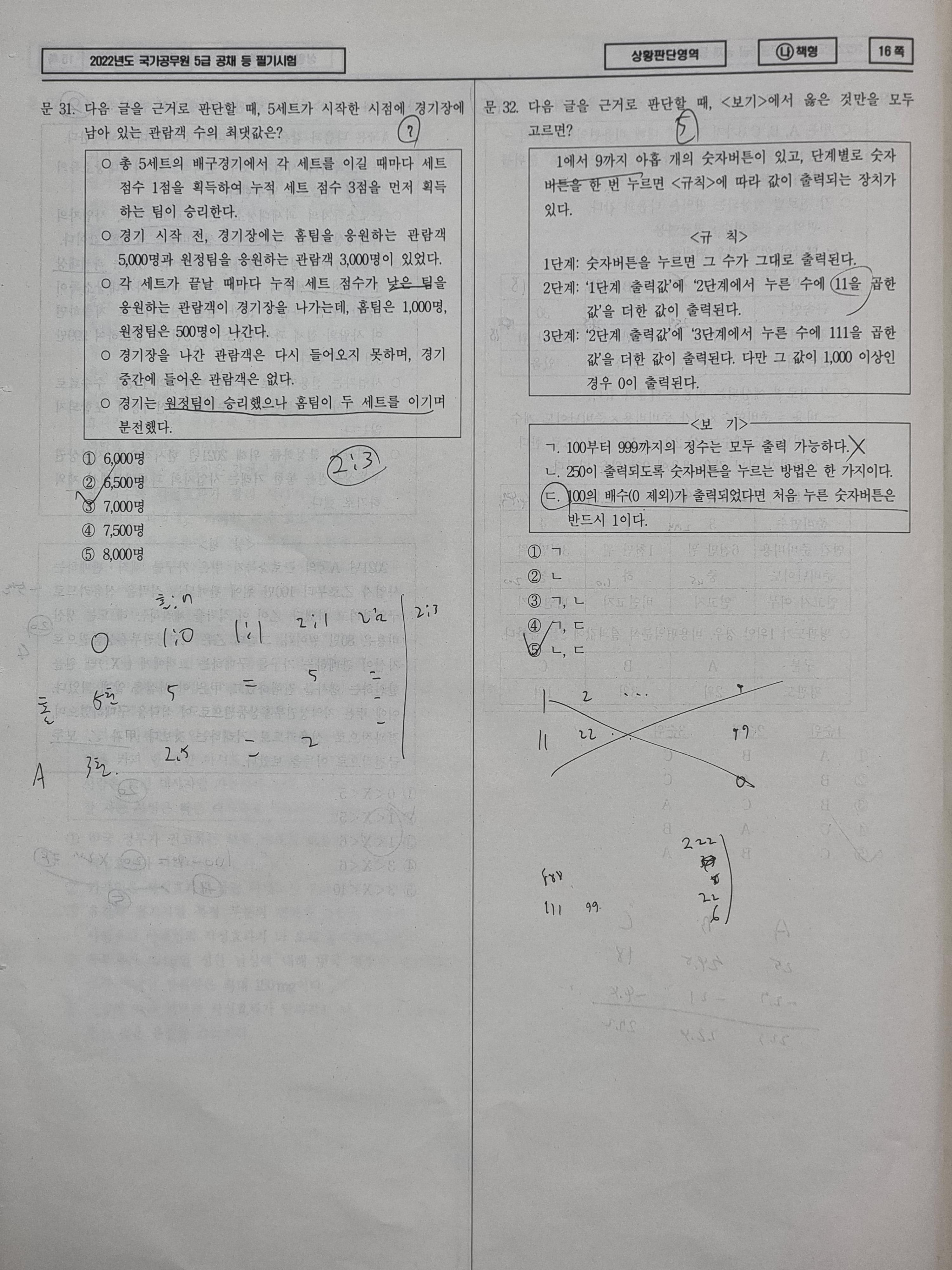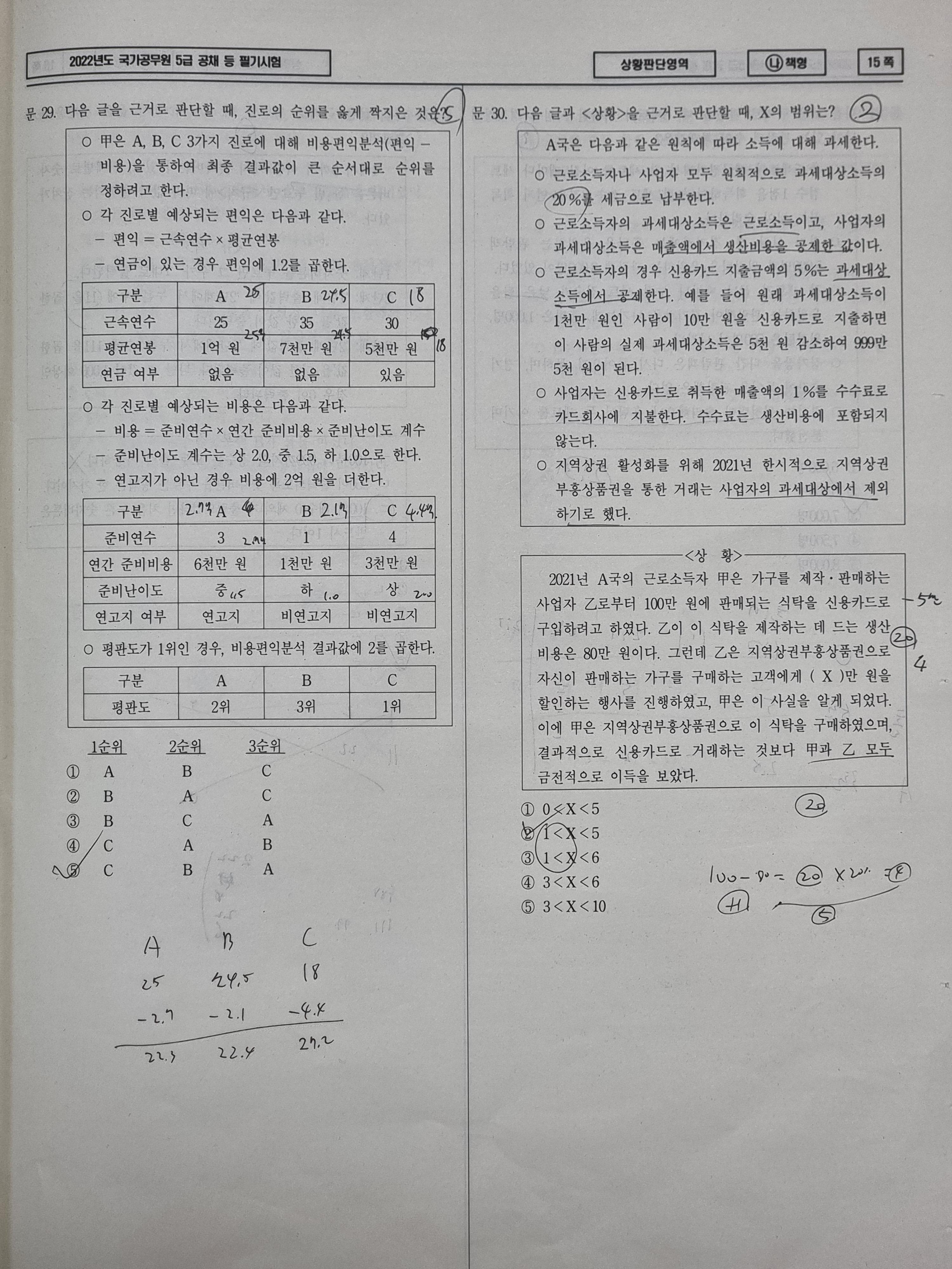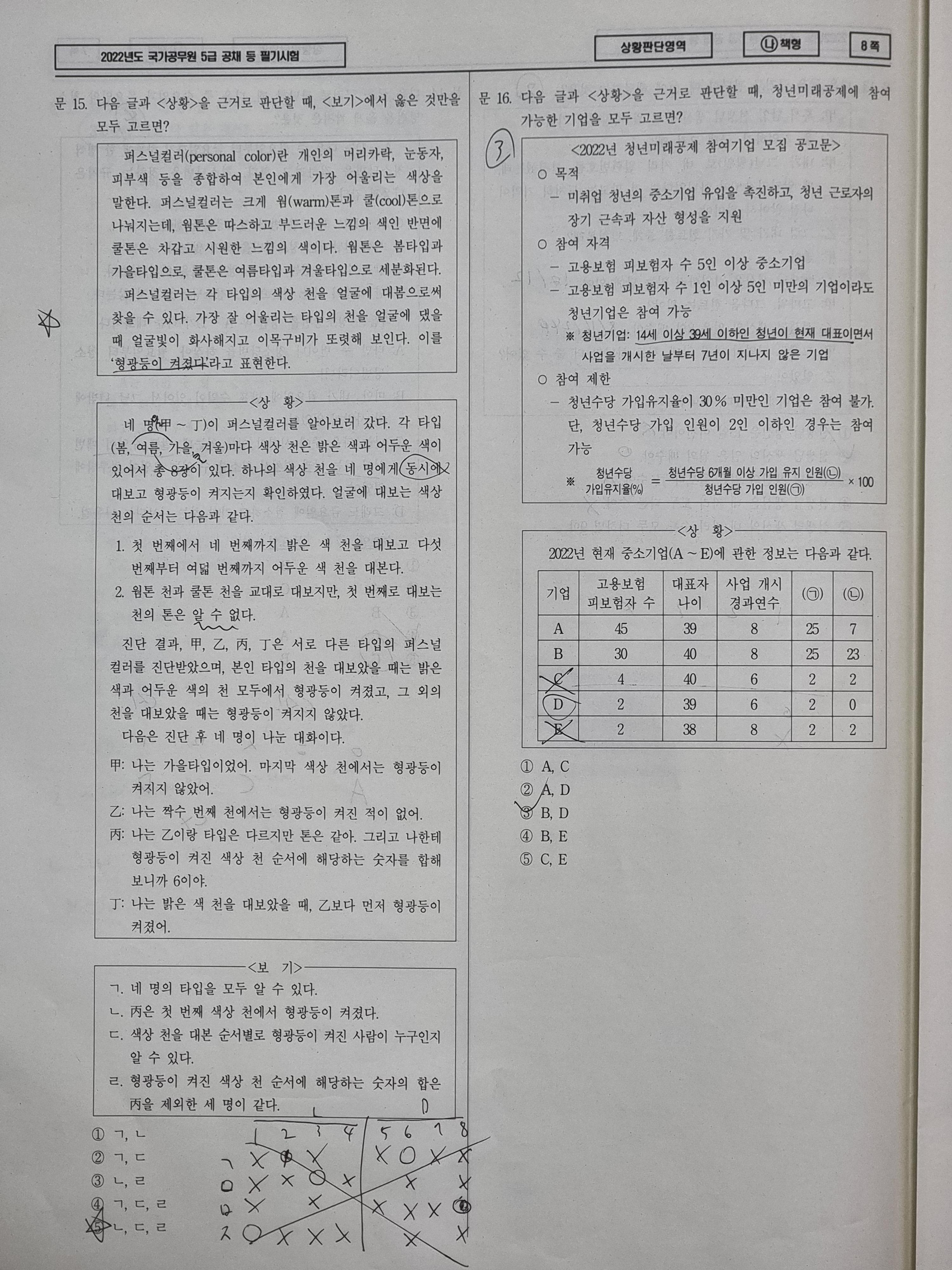 2022년 5급 PSAT 상황판단 풀이문제지 풀이 기록 2022. 2. 27. 2022년 5급 PSAT 상황판단 풀이문제지다. 2022년 5급 PSAT 실전 복기·후기 (가채점 83.3) 소리소문없이(?) 2022년 5급 PSAT 시험장에 다녀왔다. 어차피 붙으려고 보는 건 아니니 시험장이 집과 가장 가까울 것으로 예상되는 외교원후보자선발시험에 원서접수했고, 예상대로 집과 가장 가 psat-bamdori.tistory.com 공유하기 게시글 관리 PSAT 푸는 밤도리 저작자표시 비영리 변경금지 (새창열림) '풀이 기록' 관련 글 더보기 2022년 7급·민경채 PSAT 상황판단 풀이문제지 2022.07.23 더 읽기 2022년 7급·민경채 PSAT 언어논리 풀이문제지 2022.07.23 더 읽기 2022년 5급 PSAT 자료해석 풀이문제지 2022.02.27 더 읽기 2022년 5급 PSAT 언어논리 풀이문제지 2022.02.27 더 읽기 댓글