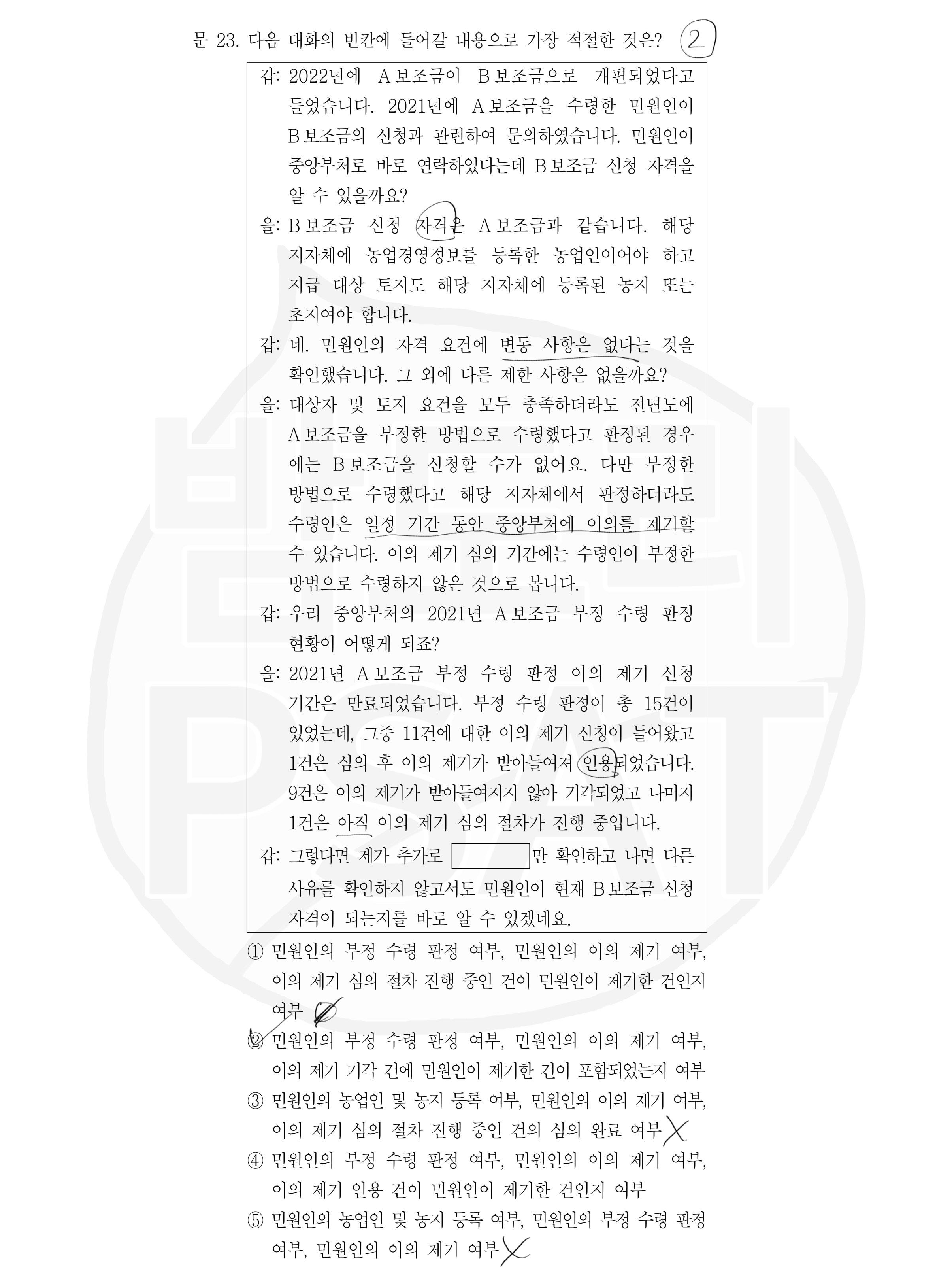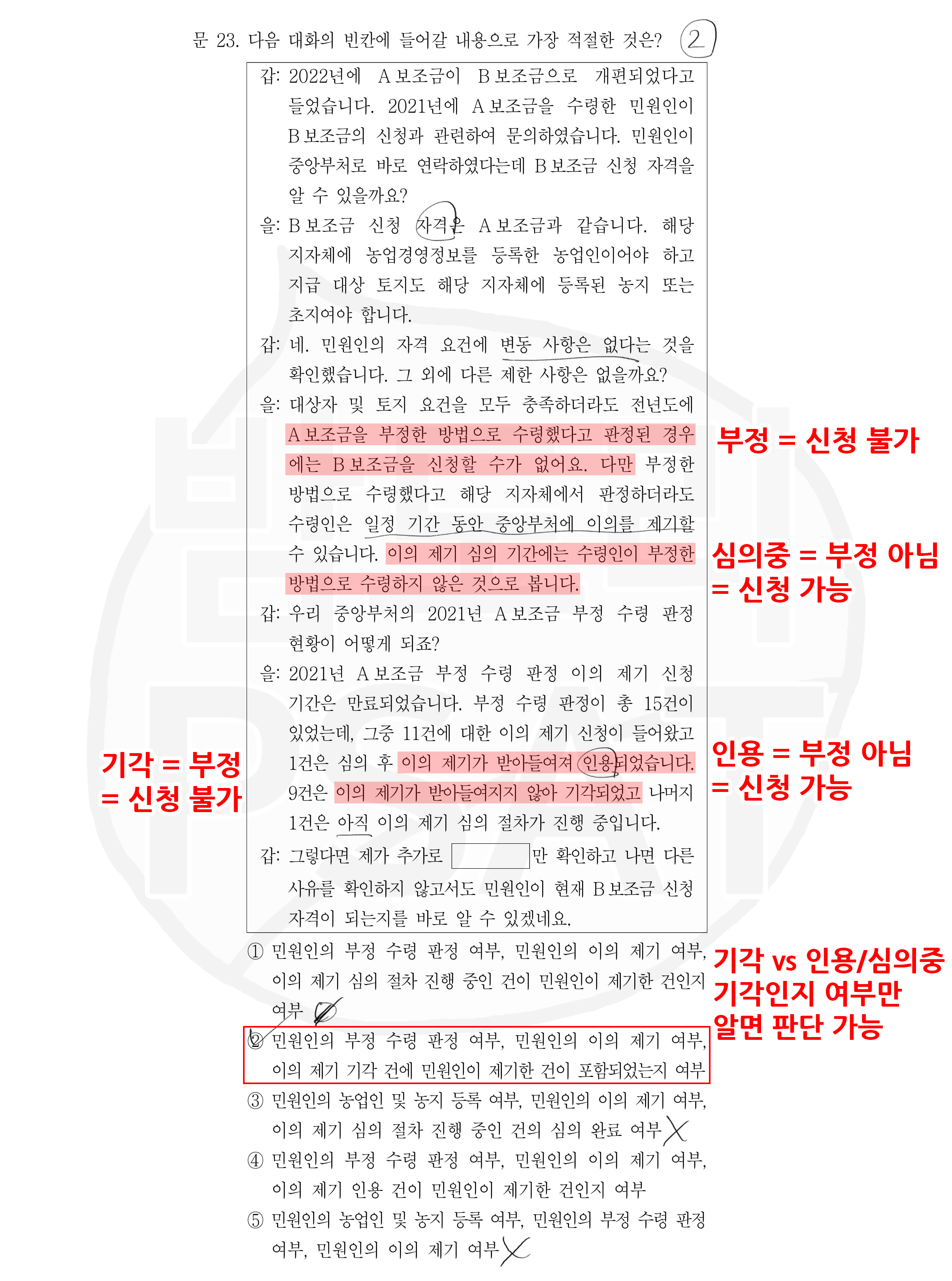 2022년 7급·민경채 PSAT 언어논리 23번 해설·풀이과정