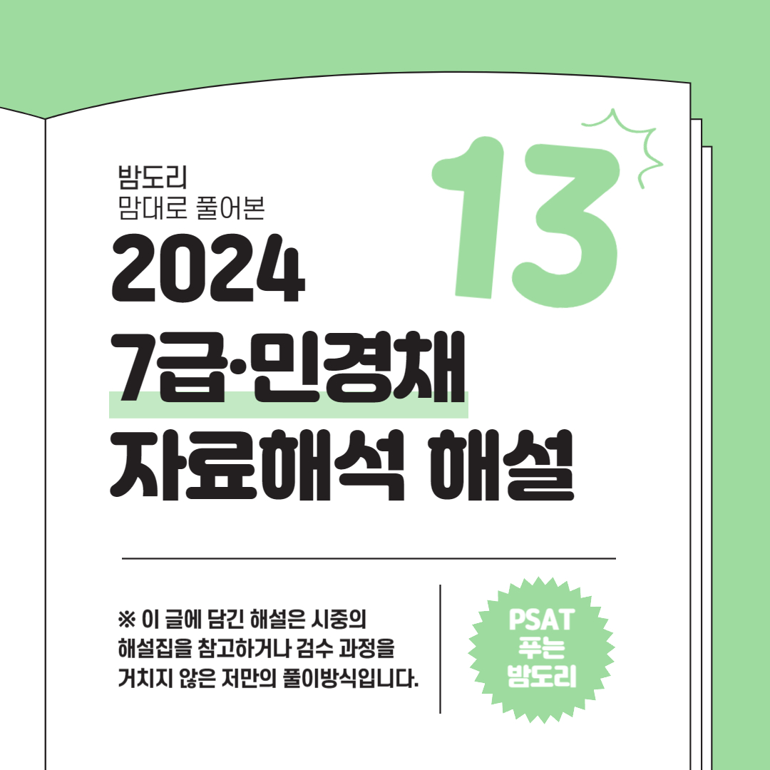 2024년 7급·민경채 PSAT 자료해석 13번 해설·풀이과정